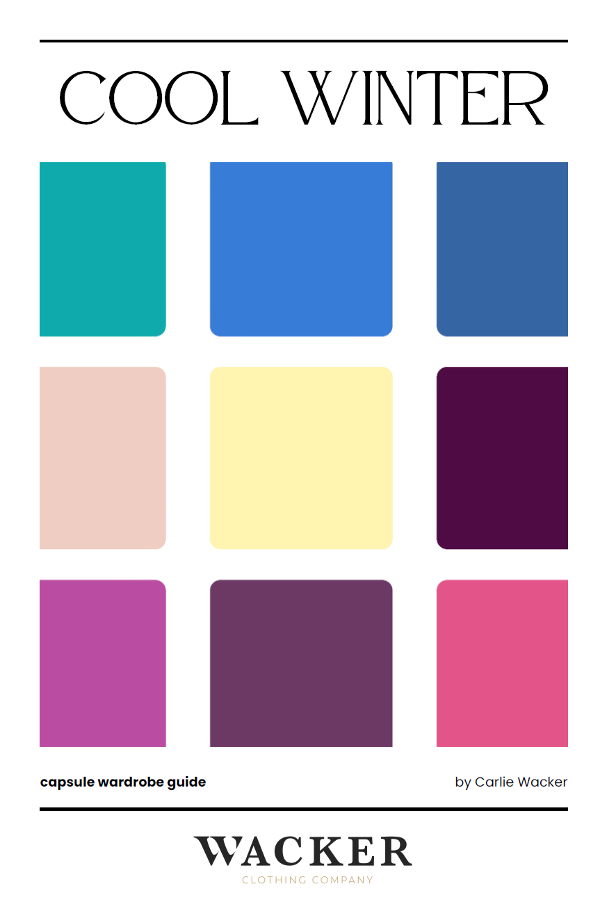 Your Cool Winter Capsule Wardrobe Guide includes colour chart for women with a cool skin undertone with contrasting or darker eyes, brows and hair. This download also includes a suggested capsule wardrobe and colour combinations to make everyday dressing a simple pleasure.