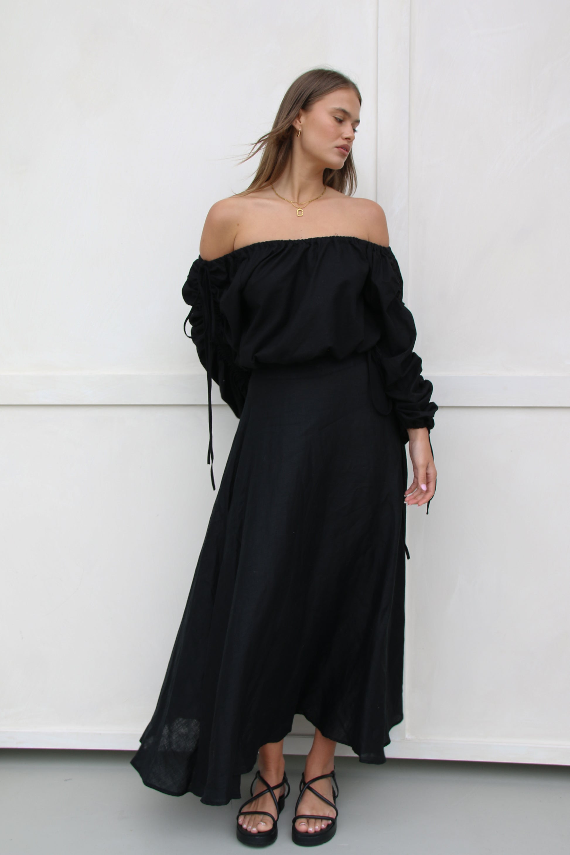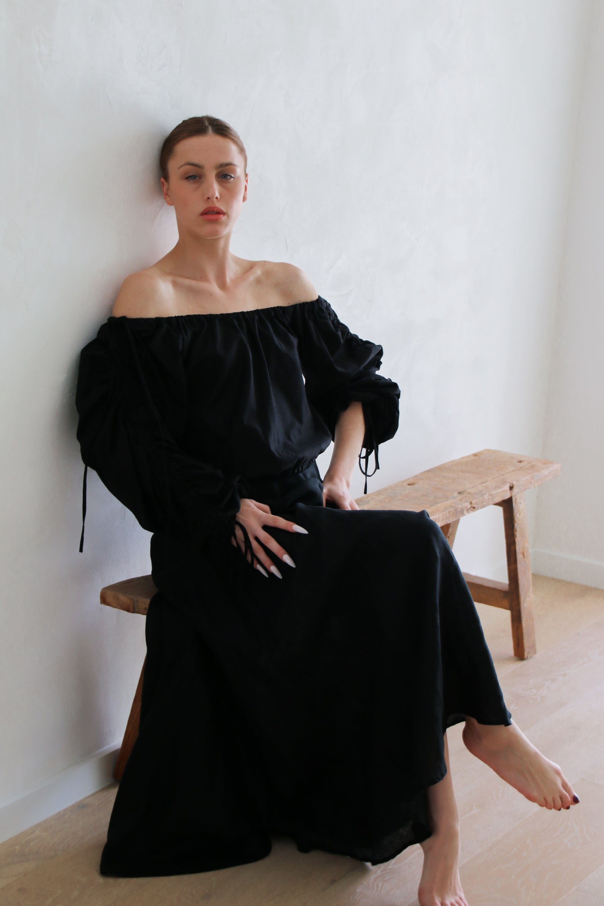 The Jeanie is a piece of wearable art - a sculptural asymmetrical drawstring blouse that can be worn off one shoulder or off both. The drawstring neck, waist and arm detail allows for adjustability for each wearer. The statement sleeve is a showstopper.