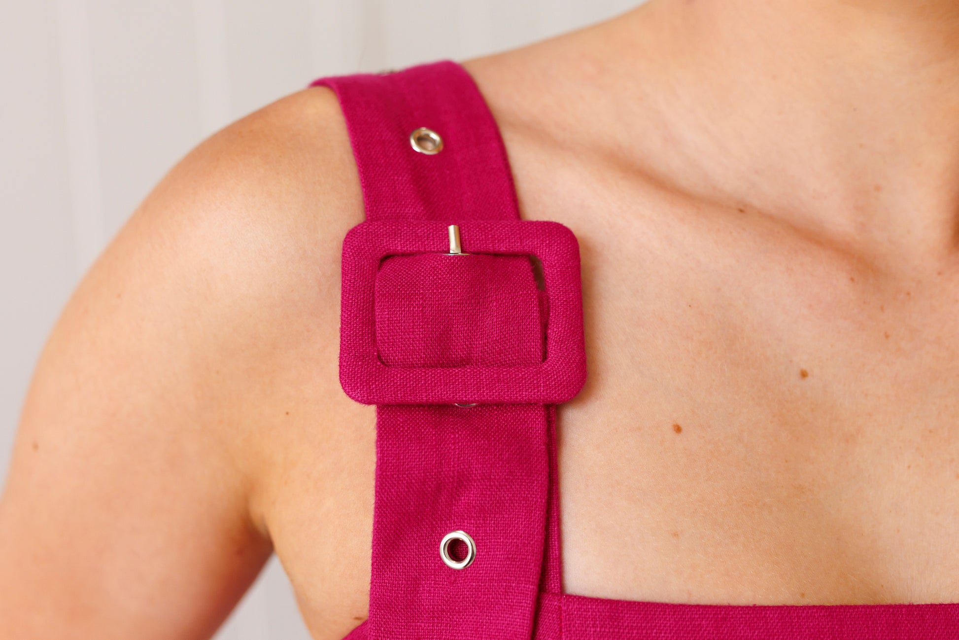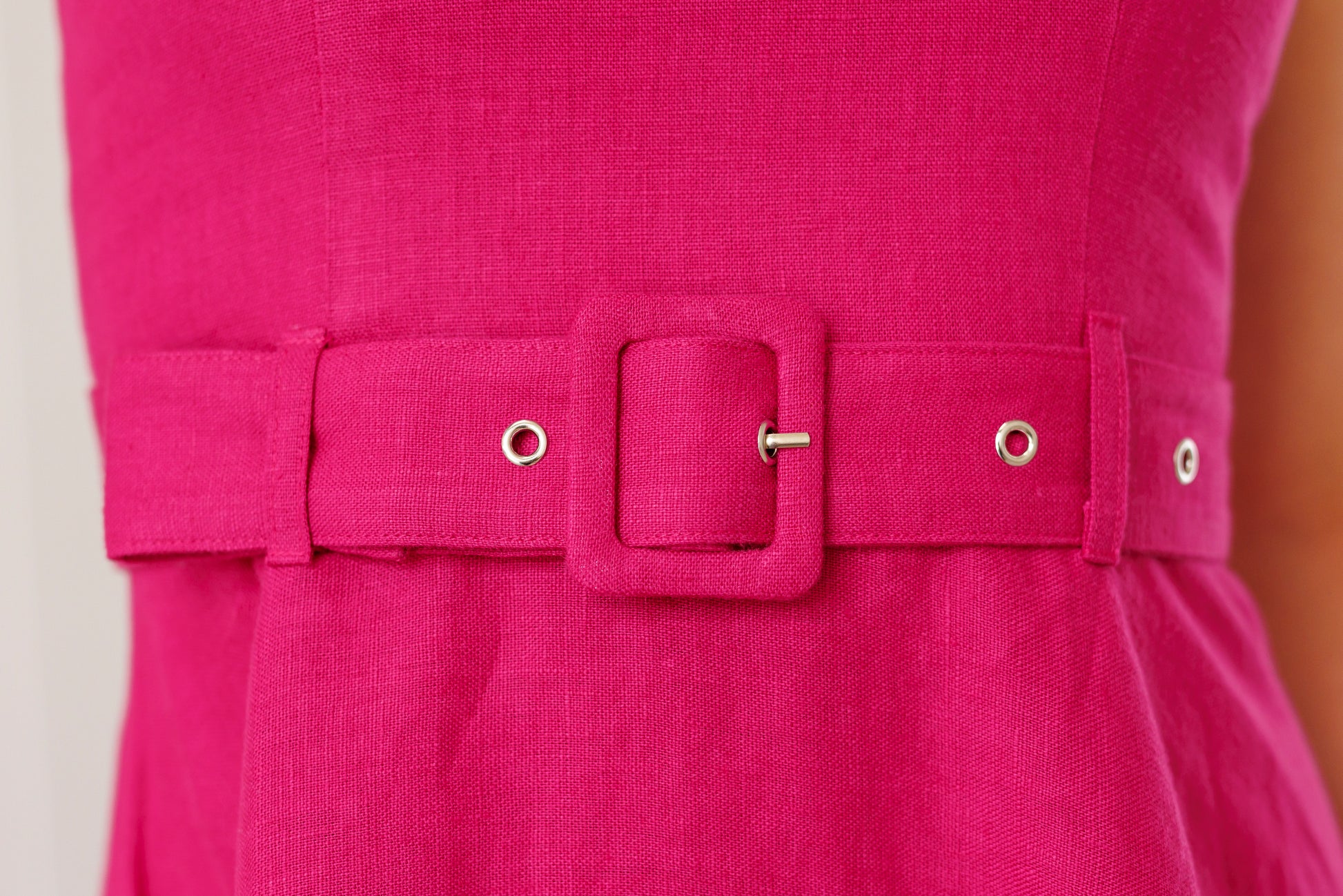 The Joy dress is a maxi dress made using 100% recycled linen in our Liquid Pink.