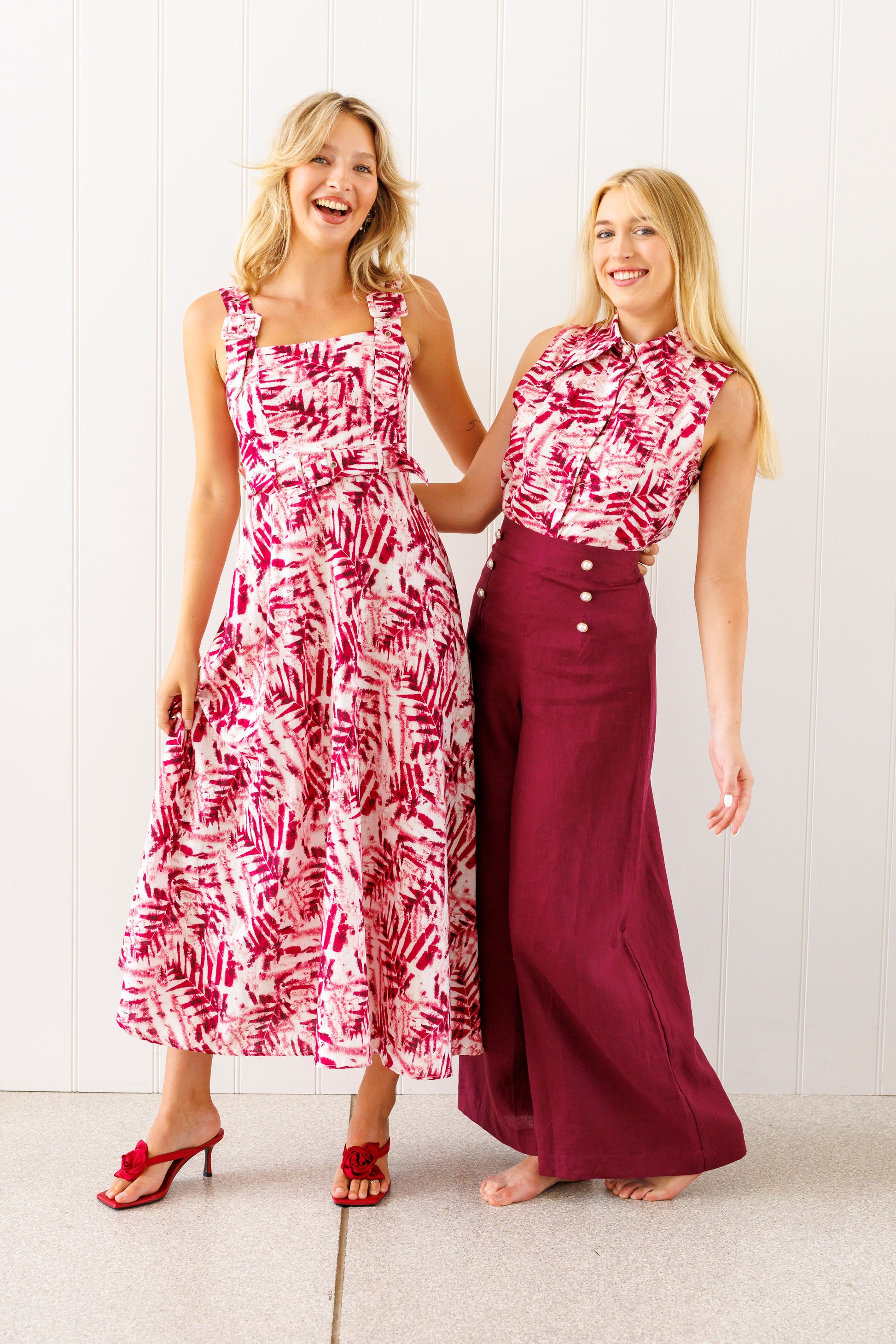 Made using a luxurious 100% organic linen in our limited edition pink Cordyline print.